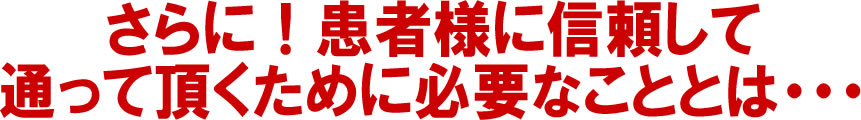 きっと患者様は先生の本気の姿勢に更なる信頼をよせて、こちらの指示どおりに継続して治療に通ってくれるようになります。
