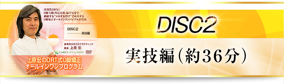 DISC2ではDRT式O脚矯正の症状レベルの検査法から、O脚矯正が出来るか出来ないかの圧痛チェック、O脚矯正実技、施術後チェック、X脚矯正、セルフケア指導まで盛りだくさんの内容が詰まっています!