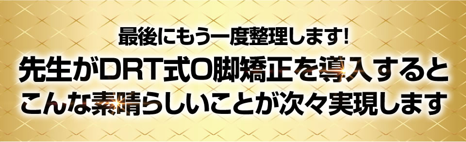 今すぐDRT式O脚矯正をマスターして施術メニューに取り入れるべきです。