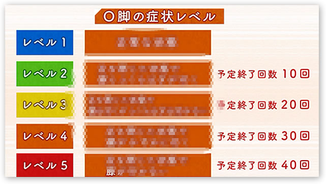 しかも、現在のO脚の状態によって、“何回の調整で完治できるか?”を患者さんに共有できるので、