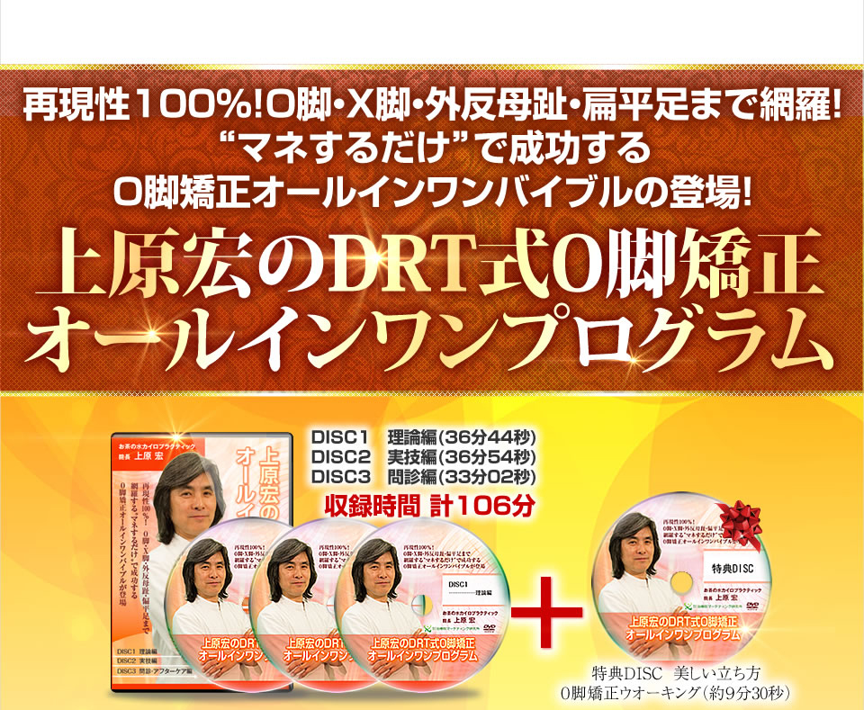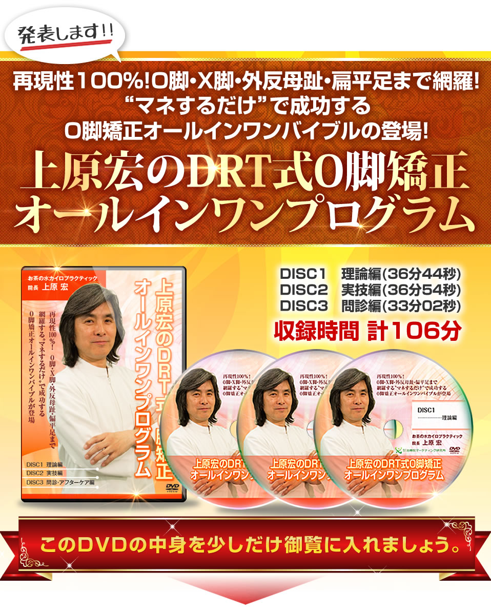までを扱っています。コレをみれば、DRT式O脚矯正の基本的構成となぜ結果を出すことができるのかが全て理解できます。