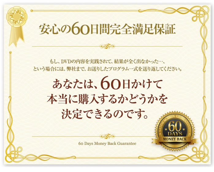 このDVDプログラムには返金保証がついています。